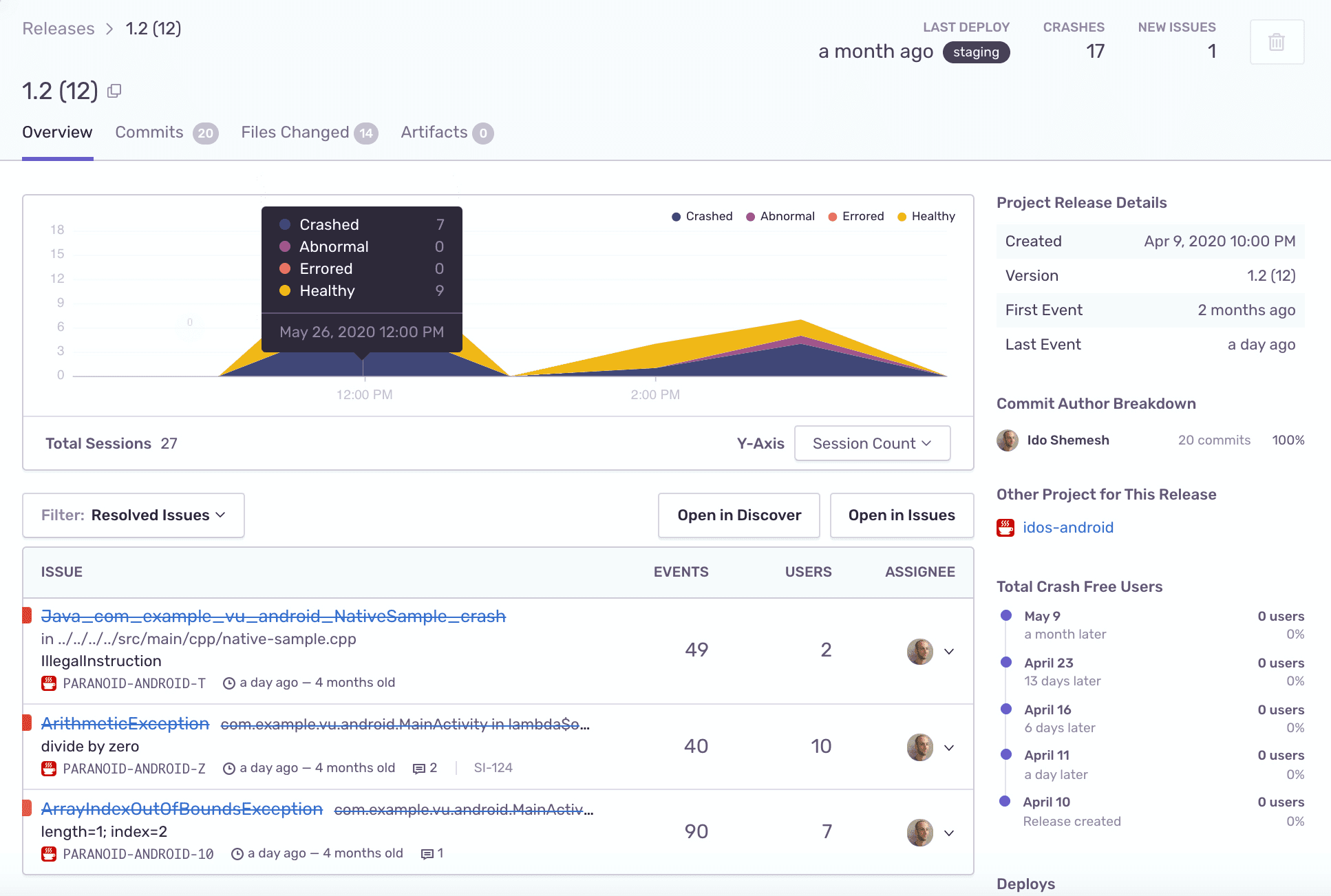 - Commit Tracking - With a release in place, Sentry can track which commits were involved with a release and the authors who made them.