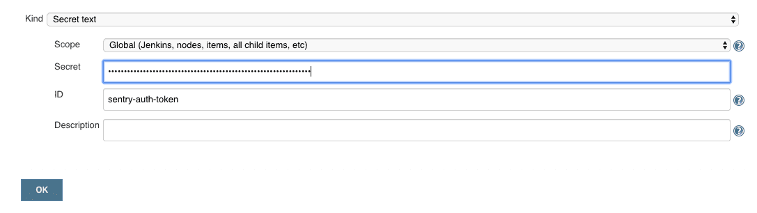 set-commitsline. credentials('sentry-auth-token')refers to the ID of the credentials just added to Jenkins.sentry-cli releases propose-versiondefaults to the commit SHA of the commit being deployed. To set this to a different version, modifySENTRY_RELEASEto the preferred version.